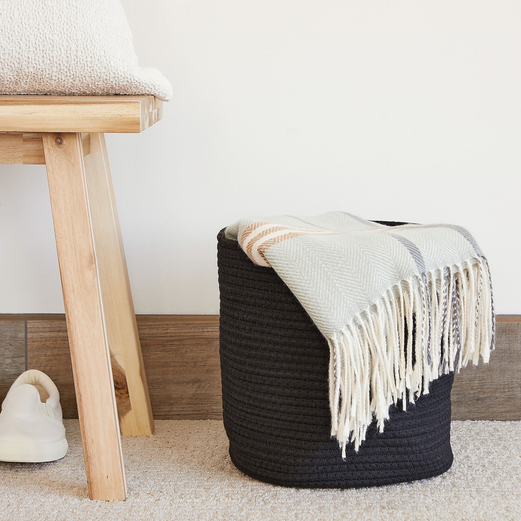 2 Pack Decorative Woven Planter Basket With Plastic Liner For Outdoor Indoor Floor Plants Storage Black 10 X 11 In Walmart Com