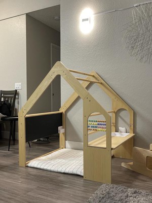 Amazon Com Avenlur Flair 5 In 1 Indoor Playhouse With Desk Table Chair Chalkboard Floor Cushion And Curtain Shades Montessori And Waldorf Style For Ages 1 To 8 Years Old
